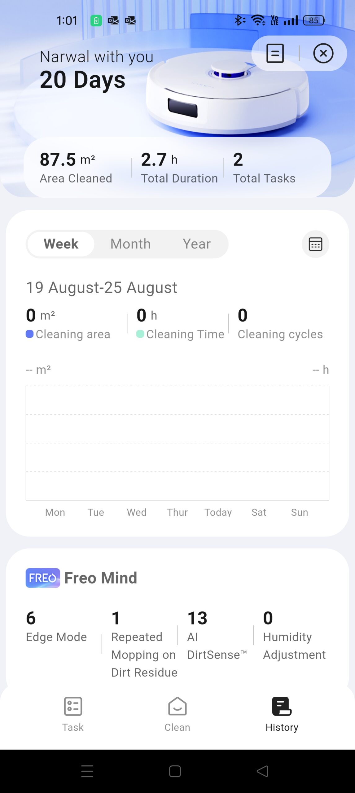 The Narwal app looks classy but is less featured than other Gen4s. I suspect that is because Freo Mind makes the decisions for you.