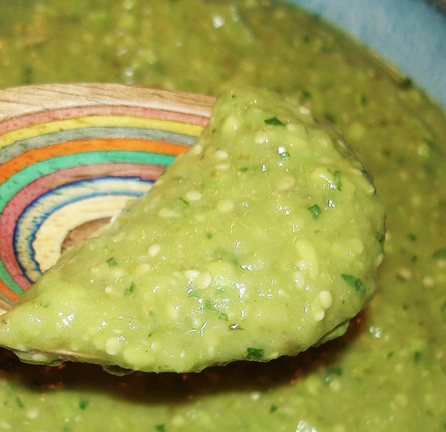 Our Avocado dip is simple: ripe, large diced avocado, lemon juice, mild chunky salsa (store-bought), and light cream cheese. The problem is that we can never get the cream cheese to mix in properly, as it leaves little clumps.