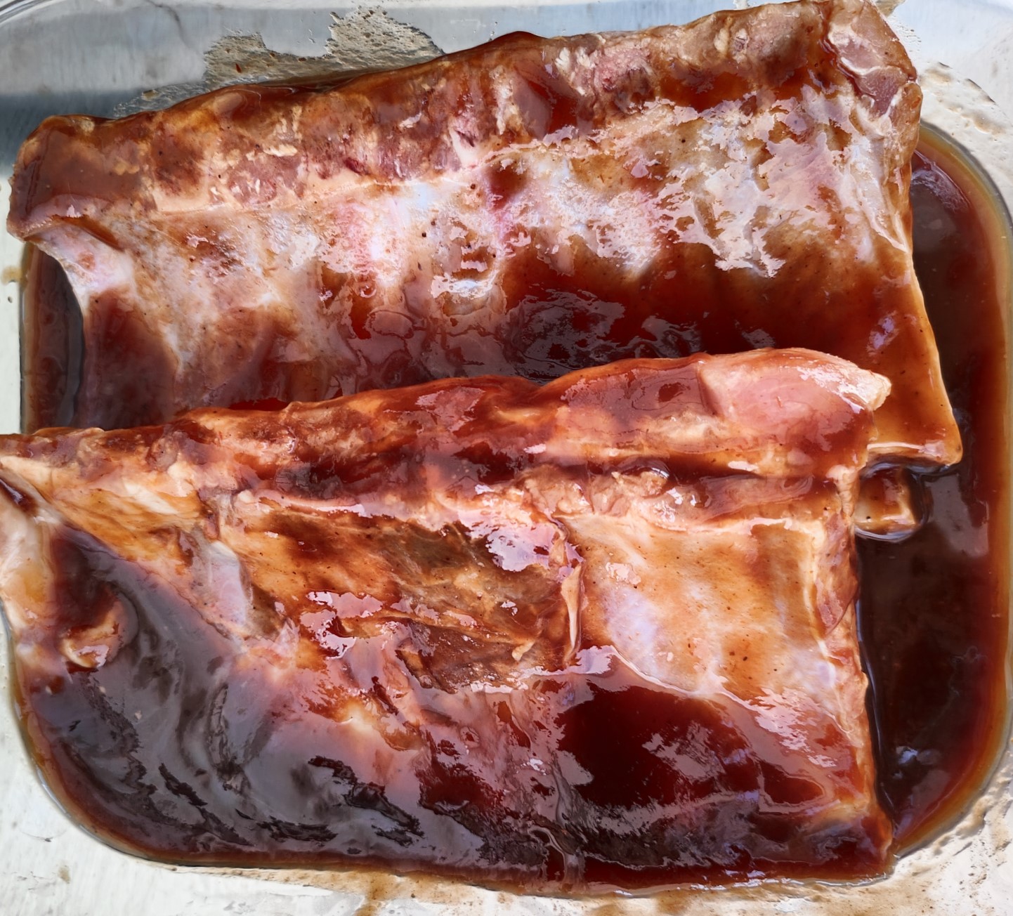 We can now do ribs; we will make the marinade ourselves next time. Note that you should avoid lifting the lid for at least the first 45-60 minutes to let the smoke do its job.