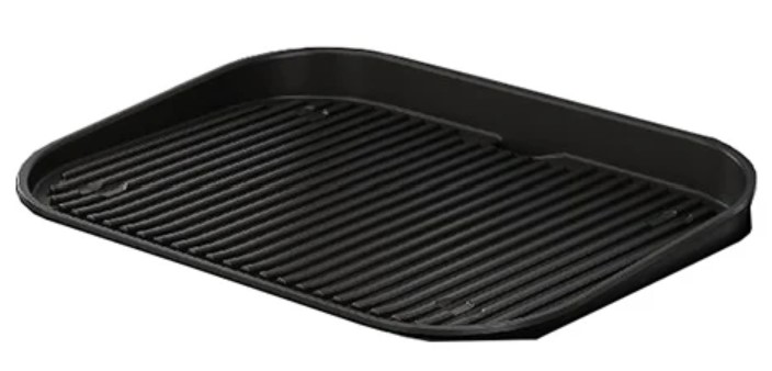The grill tray is ribbed, so it requires a tray or tin. If your baking tin fits (about 10” round or 14” rectangle), you can bake cakes, breads, focaccia, scones, etc. Maximum temperature is 220°.