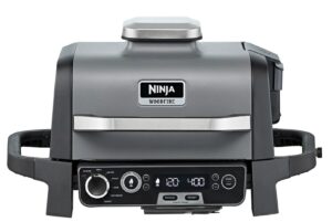 The Ninja OG751 Electric BBQ Grill & Woodfire Smoker is an awesome kitchen appliance —well, an outdoor kitchen appliance. It can smoke meat and is also a large-capacity BBQ grill, air fryer, oven roaster, baker, dehydrator, and reheater.