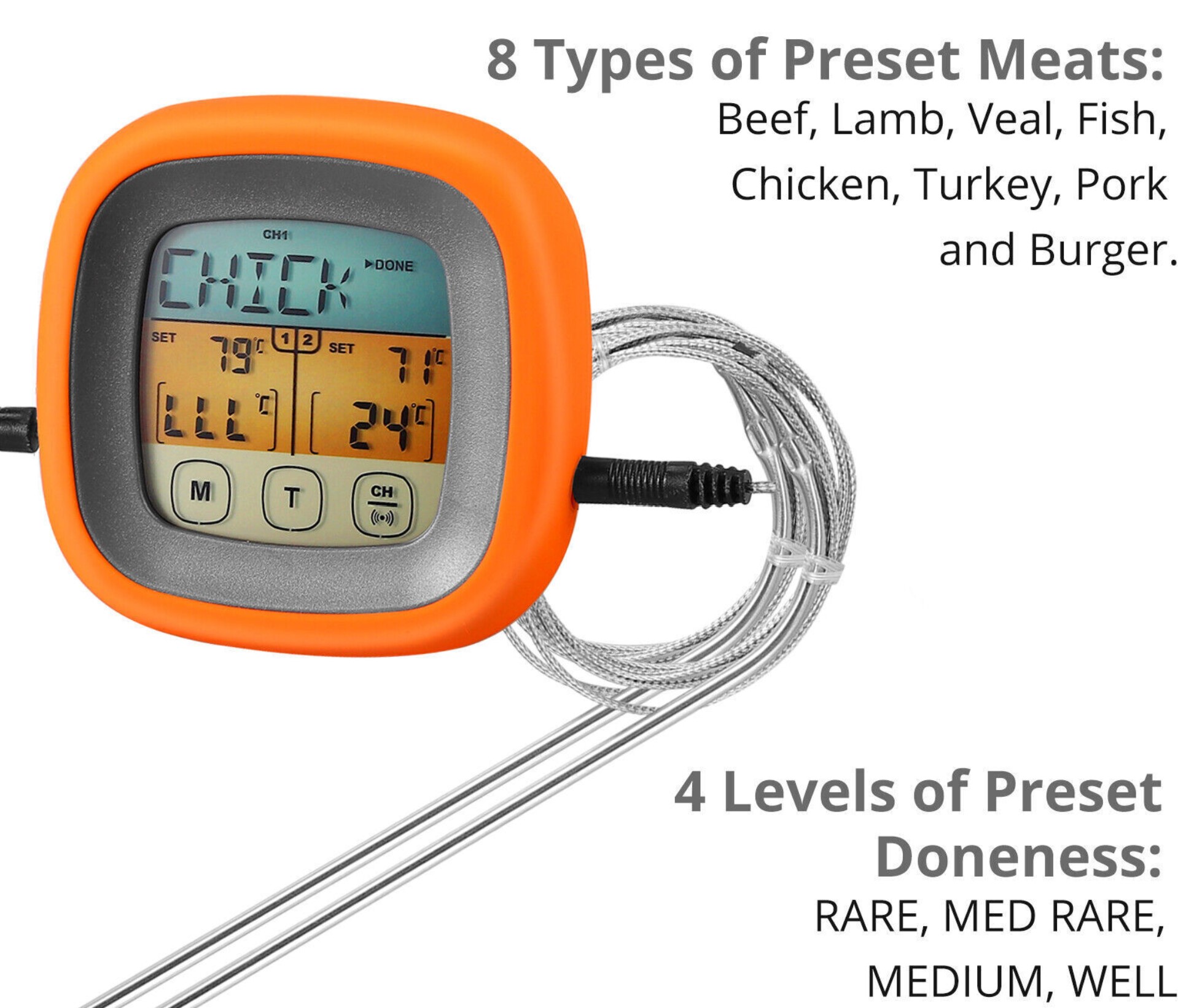 Our best advice is to buy a low-cost dual probe digital temperature probe that also provides guidance on temperatures for various meats and levels of doneness. The probe cables fit nicely into each side of the drawer.