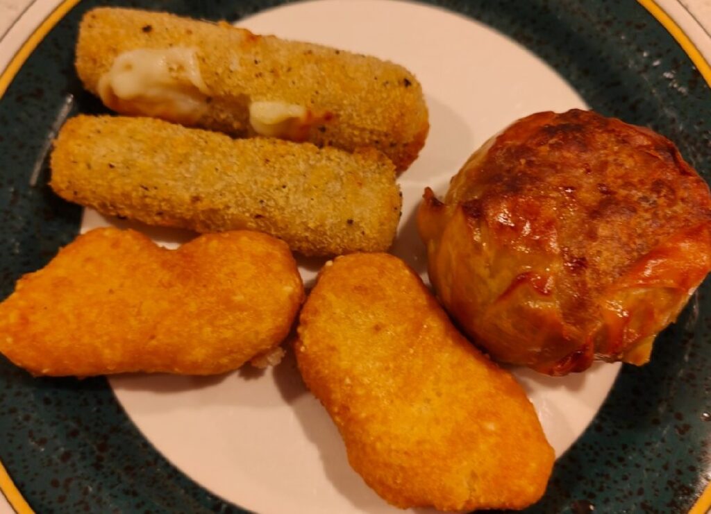 - Crumbed chicken schnitzel – 200° for 1o minutes, turn once.