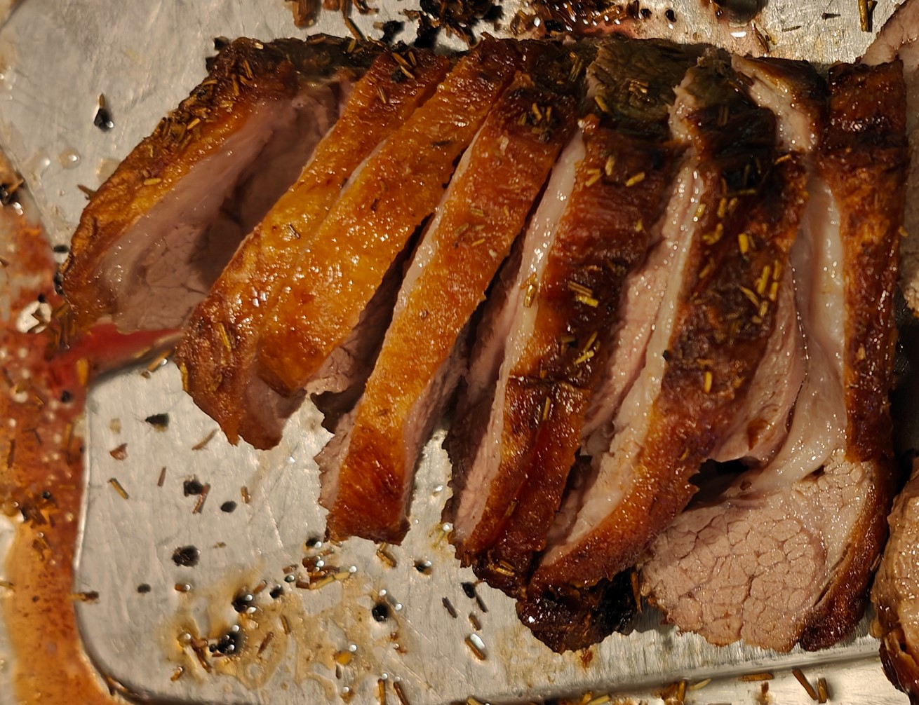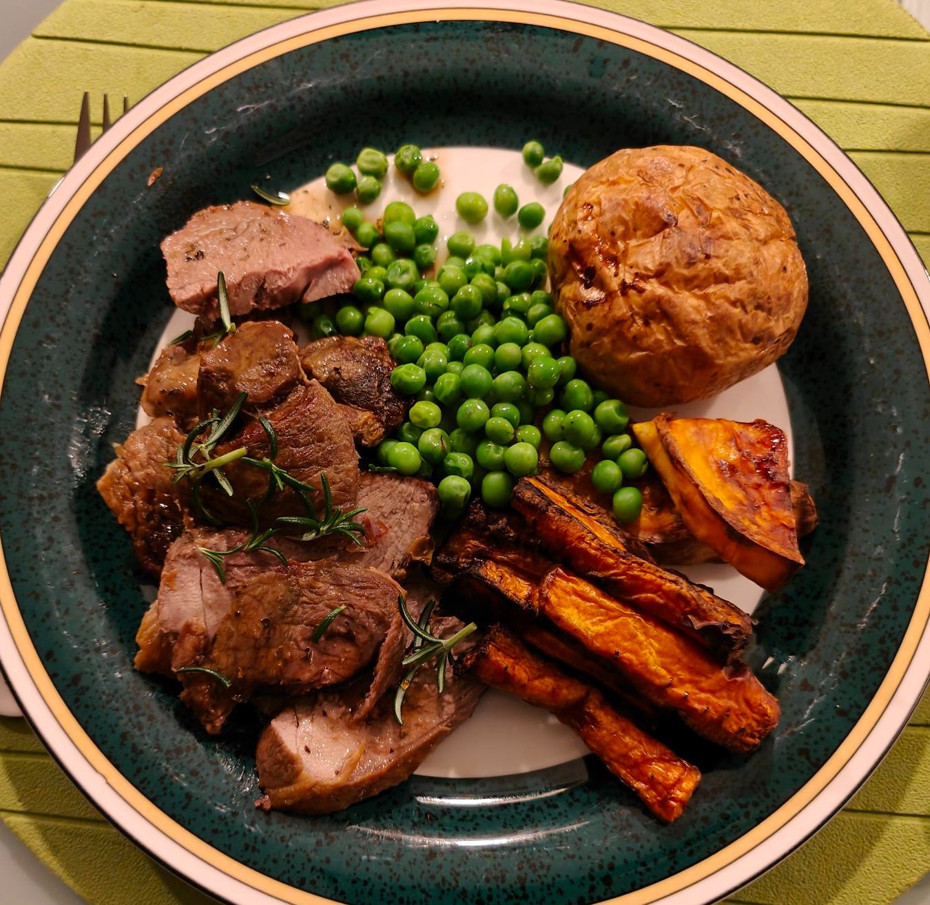 - 1kg boneless leg of lamb – roast 190° for 50 minutes – slightly too pink but with a longer rest time, and it was perfect