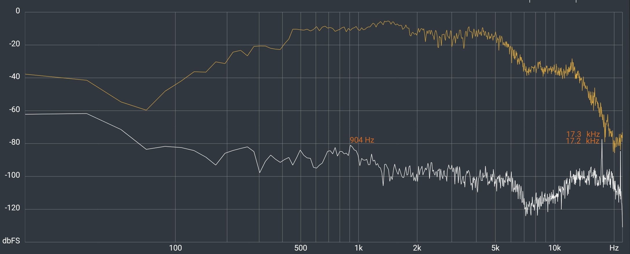 It has no low-or-mid-bass, very slowly building high-bass and mids and then falls off a cliff at 6kHz to 20kHz. The sound signature is strictly mid for clear voice.