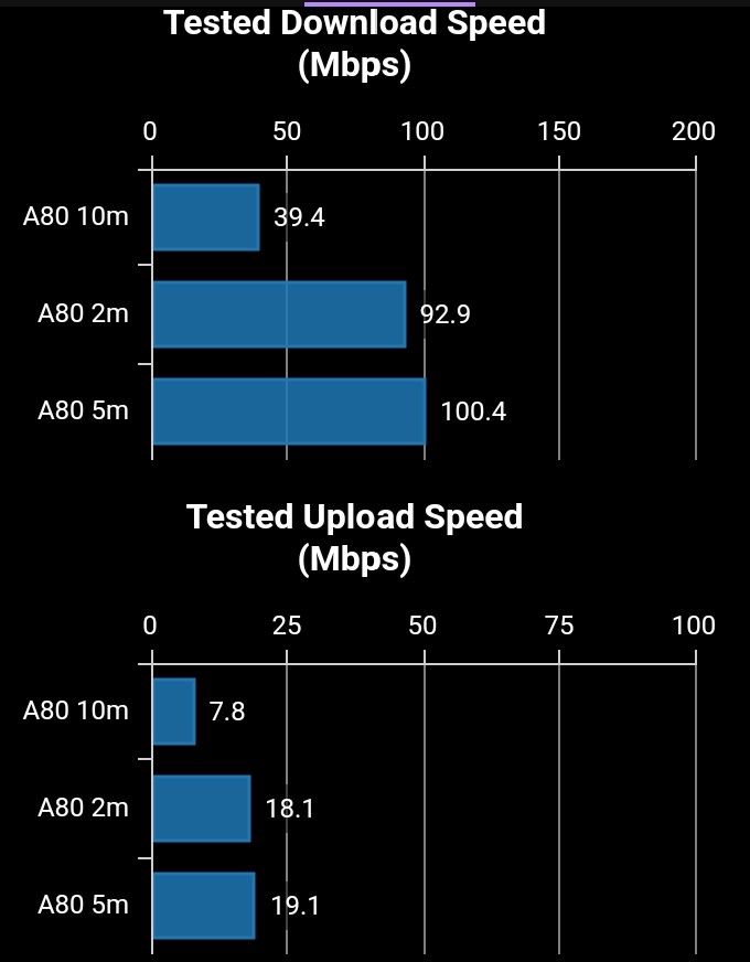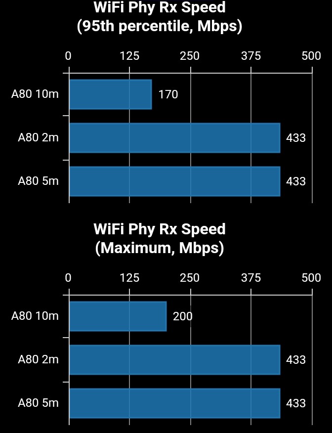 • Wi-Fi 5 AC 2.4/5GHz has a maximum speed of 433Mbps out to 10M, but it is not strong– Passable