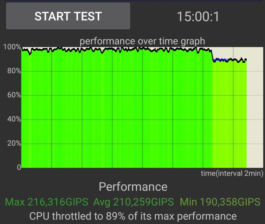The lack of throttling is excellent. It loses 11% after 13 minutes and then stabilises. Of course, that reflects OPPO’s superior thermal management in all its phones.