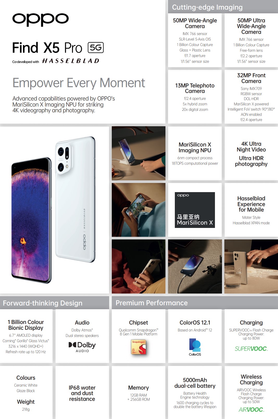 The screen is important to the camera system to preview shots accurately. The new epoch-making OPPO MariSilicon X Neural Processing Unit (NPU) enables 20-bit RAW image processing to capture stunning still images and 4K AI Night Video with live preview and 1,000,000:1 HDR.