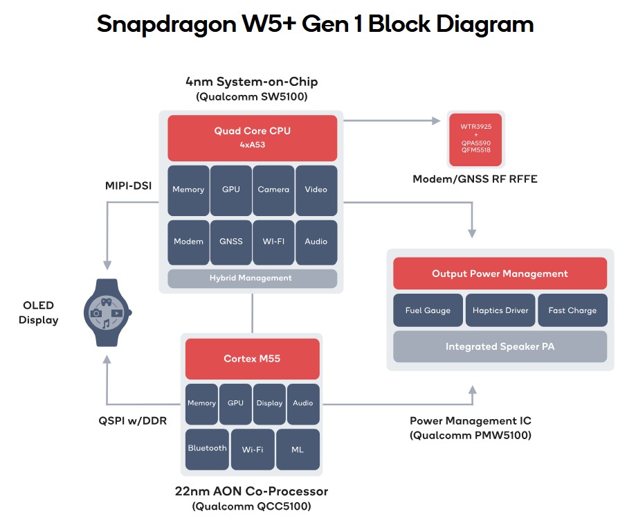 Under most circumstances, it shares the load between the 4nm 1.7Ghz Snapdragon W5 Gen 1 and the 20nm BES2700BP Ultra Low Power co-processor. The only caveat is that you must use a watch face that is ‘hybrid-aware’.