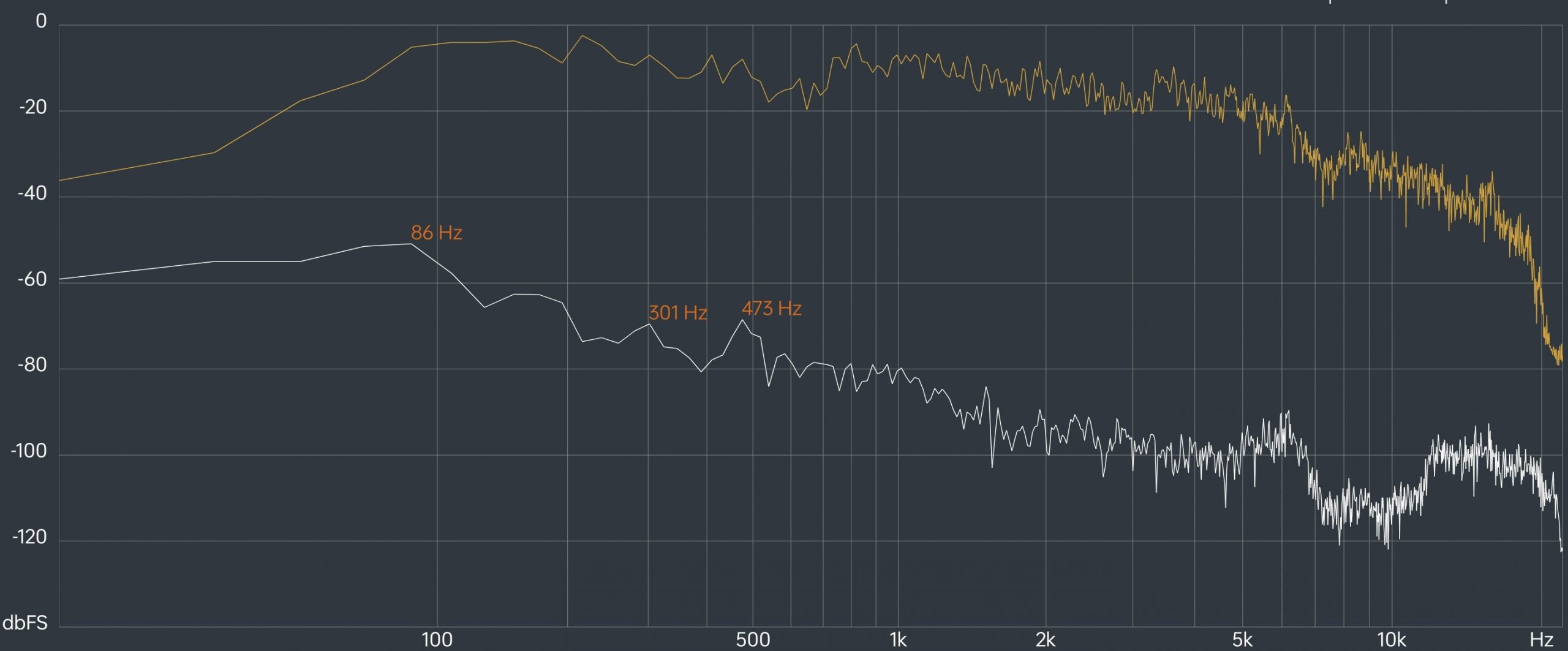 Bass starts at a low 47Hz (excellent) and climbs steeply to 85Hz (excellent), where it was flat almost to 10kHz before a gradual decline to 20kHz.