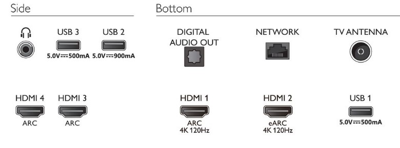 - HDMI 2.1: 4K@120Hz, 48Gbps, VRR, ALLM, eARC