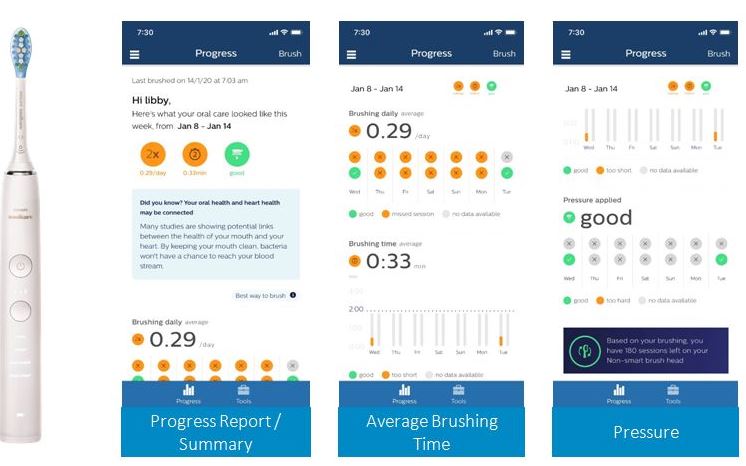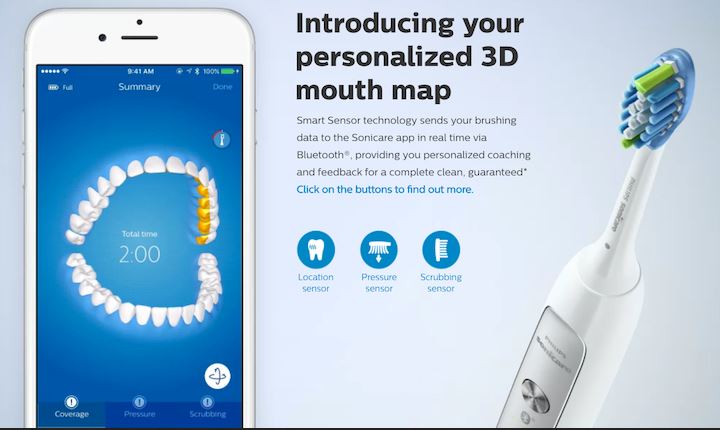The Philips DiamondClean 9000 toothbrush offers superior cleaning, and the Philips Sonicare App provides a suite of tooth care indicators.