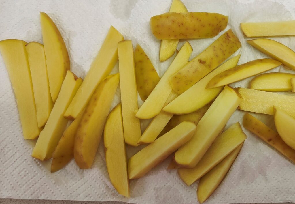 If you don’t want to cut the potatoes, then frozen supermarket fries are OK. The pre-set is 24 minutes @180°.