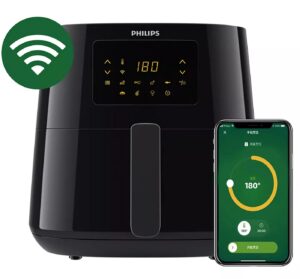 It also adds value with the NutriU App for Android and iOS, has more than 2000 recipes (not all for Air-fryers), and communicates with the Airfryer via Wi-Fi to set it for each recipe.
