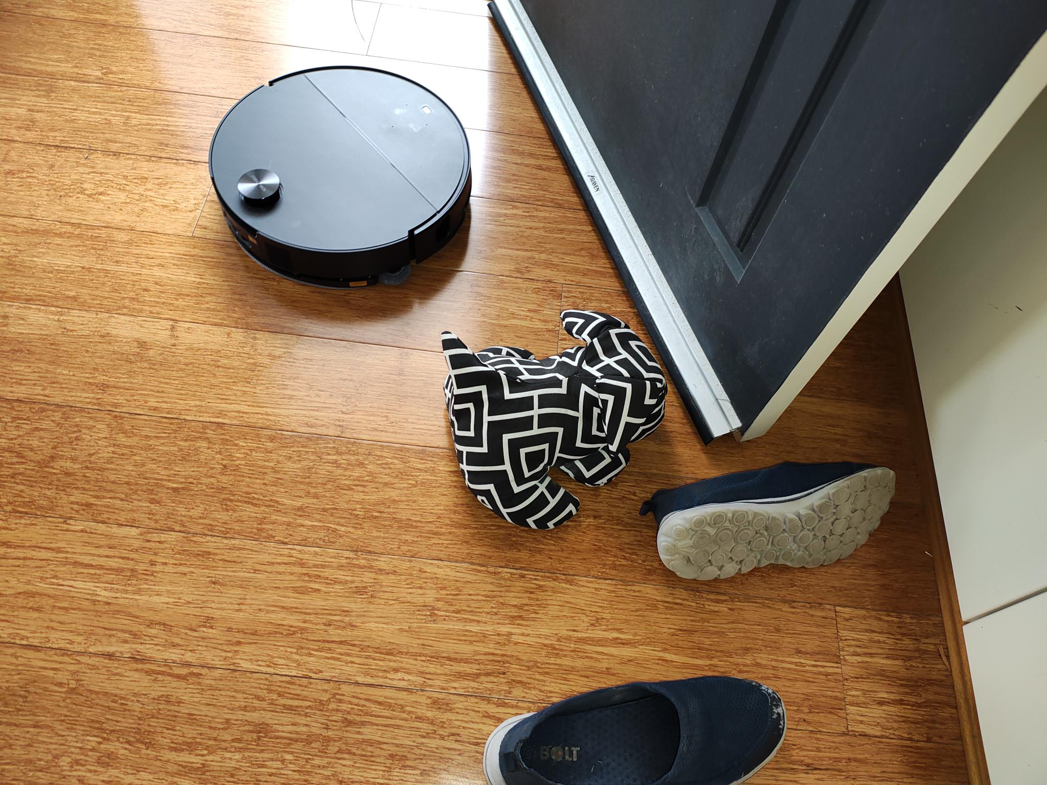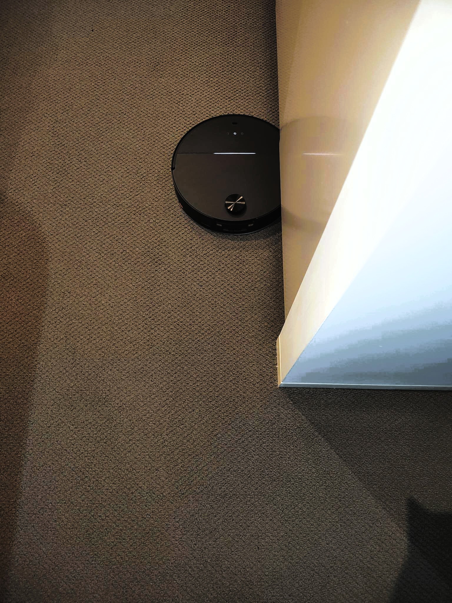 - A mix of hard and carpet floors on one level. I was not impressed with the carpet vacuum or its edge/corner clean—there is a big gap the brush cannot reach. But as suggested, I switched to the Vacuum Carpets First (leaving the mop pad at the cleaning station) and enabled carpet boost. It gets more stuff out of the carpet, but the edge/corner clean is still a problem.