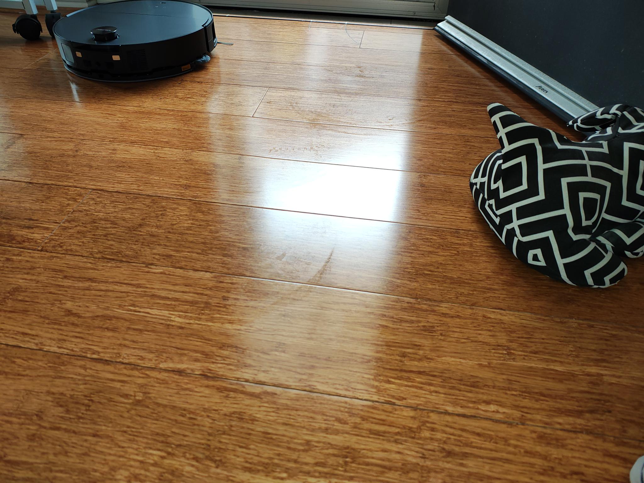 Single-level 30/10/60% carpet/tiles/bamboo hardwood (reviewer—me). I was surprised that the platten mop did as well as a rotary. The hard floors were clean. It was less efficient on grippy tiles. The carpet vacuum efficiency was lower than expected for a 22,000Pa vacuum, but it did pretty well on the second pass. It gets a buy recommendation as a Gen 5 robot vacuum/mop.
