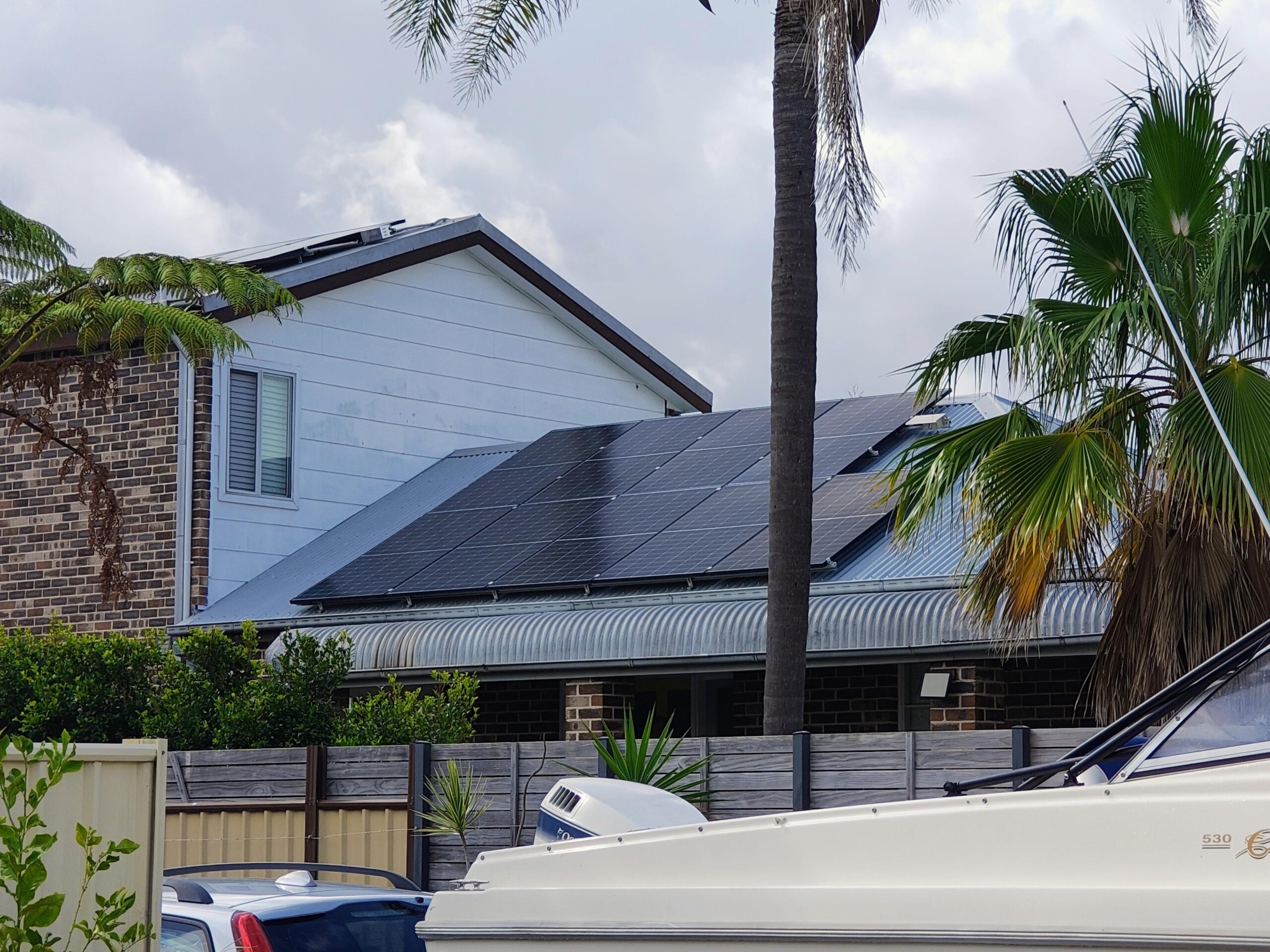 On a sunny day, the batteries charge in under three hours from 9-12 AM and then cut in at around 7 PM to handle cooking loads and more. At 10 PM, we turn off the ducted air conditioner and use a smaller split system in the bedroom. The battery lasts all night, and the process starts again.