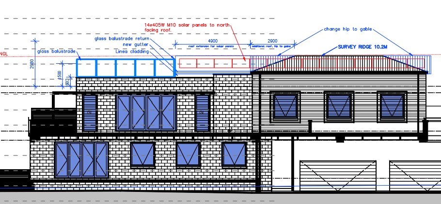 As bad luck would have it, we live beside the sea, and the Colourbond roof (circa 2004) was rusted and needed replacement. We applied for a DA to convert the hip roof to a gable (Plan C), with faster approval after several months. We now had room for 24 panels – 10 on the north and 14 on the south-facing roof.