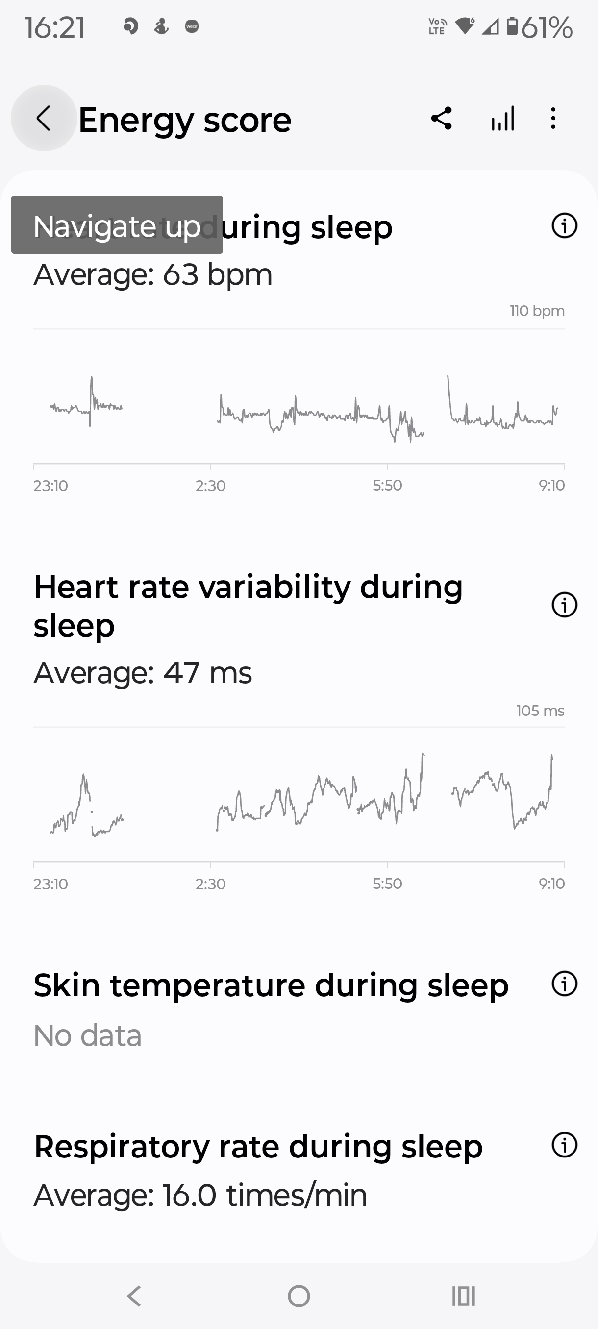 - Skin temperature during sleep (battery drainer)