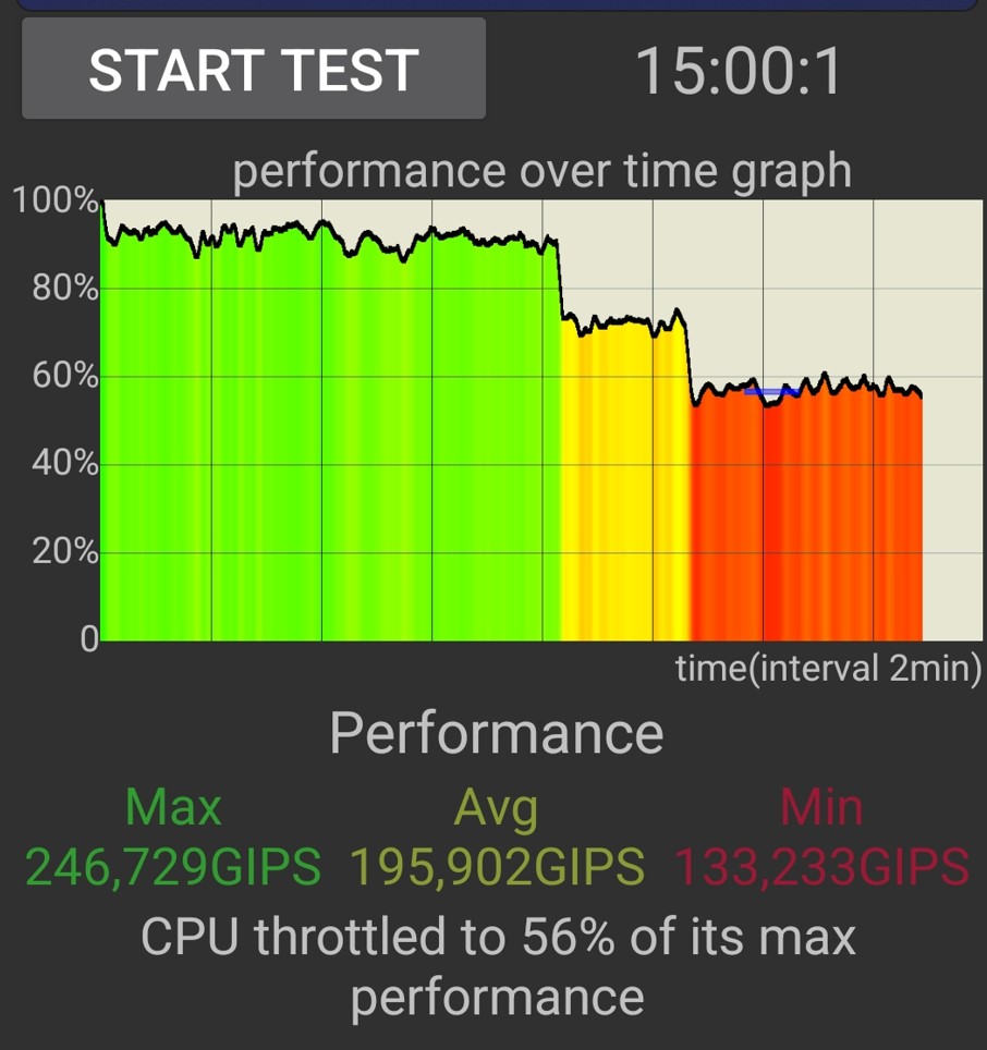 Throttling is also a significant concern to power users and gamers. It drops back savagely by 44% over 15 minutes, but the average user won’t push it this hard.