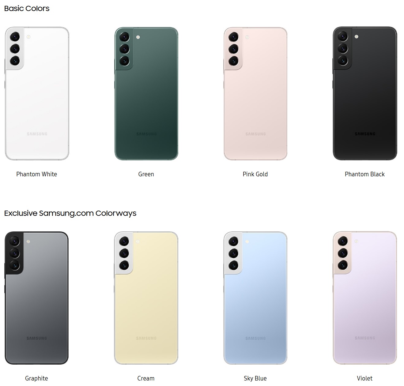 | Model | Samsung Galaxy S22 | Samsung Galaxy S22+ |