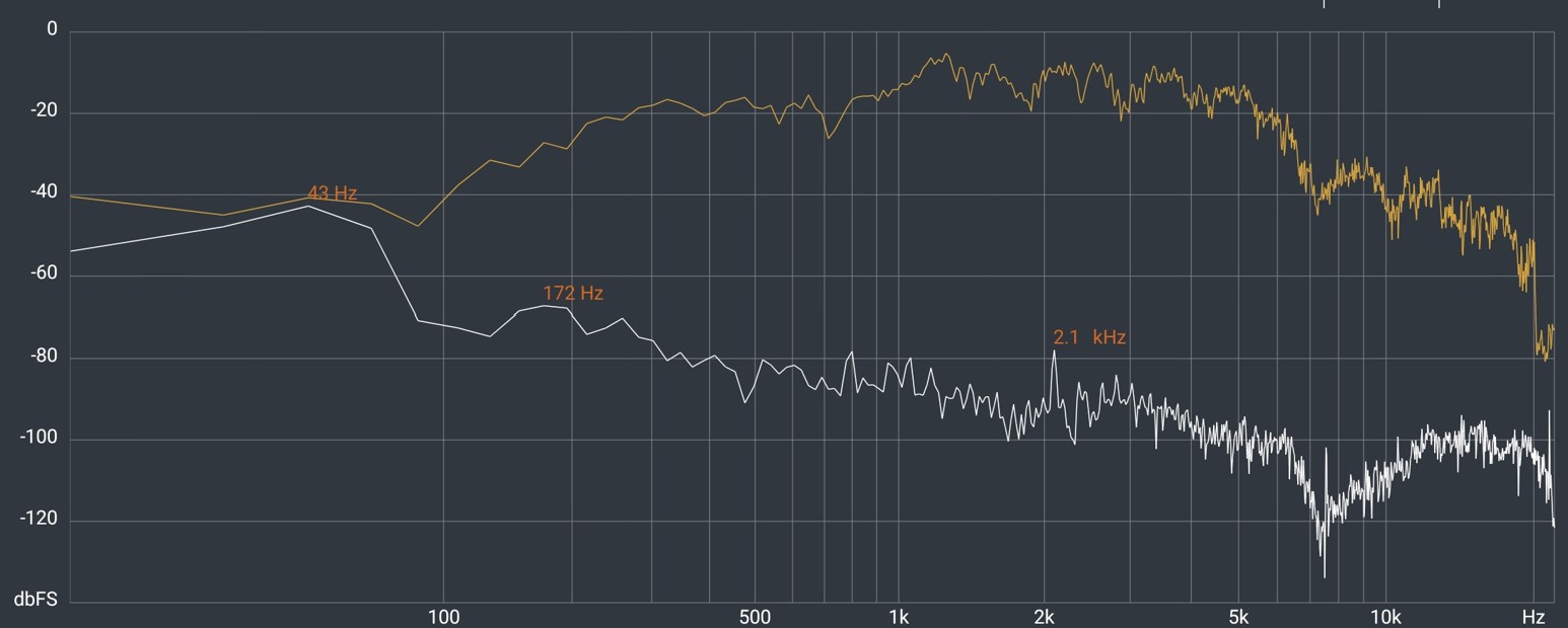 It has no low-or-mid-bass. High bass starts at 100Hz and builds to 200Hz, so do not expect a good bass response. It keeps building to 1kHz, where clear voice resides. It is flat (good) in a narrow range from 1-6kHz, then declines to 20kHz. Technically it is a mid sound signature (bass recessed, mid boosted, treble recessed) – for clear voice, but music is tinny, hollow and harsh (more Analytical).