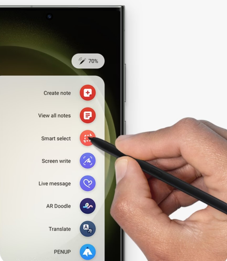 Removing it from the internal dock activates the Air Command menu to create a note, cut, paste, screen write (when off), Translate and much more (see table below). It also acts as a remote camera shutter button. Replacement pens are $92.