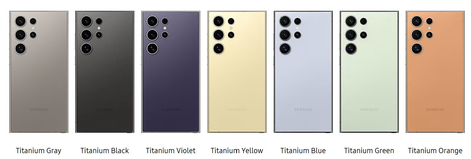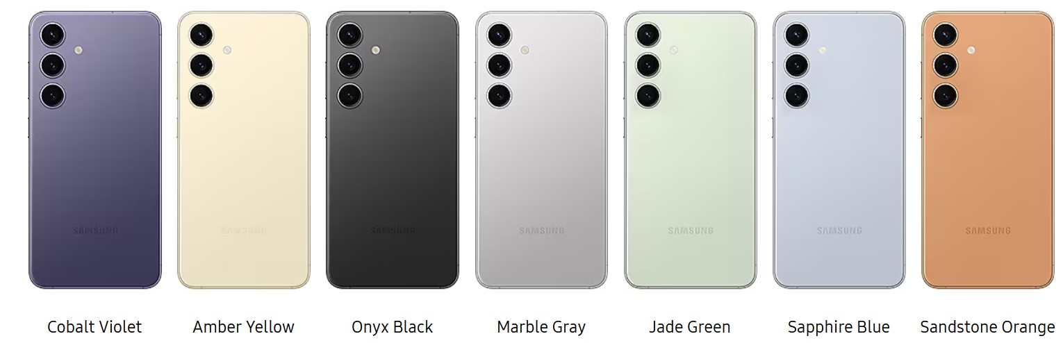 | Colours | Retail: Titanium Grey, Violet, Black, Yellow Online: Titanium Blue, Green, Orange | Retail: Cobalt Violet, Onyx Black, Marble Grey, Amber Yellow Online: Sapphire Blue, Jade Green, Sandstone Orange | Same as S24+ |
