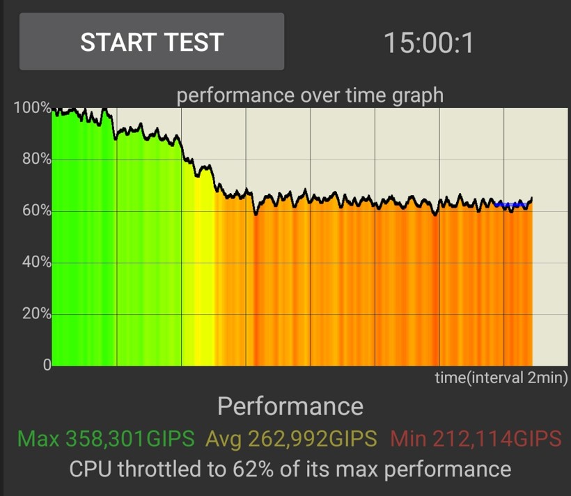 The latest 4nm Qualcomm SD8+ Gen 1 flagship chip provides both power and reasonable battery efficiency. It nearly earned an Exceed rating, except it throttles terribly (heat issues), losing 38% of its power at 100% load in just 4 minutes. Thankfully it then stabilises at a lower rate to avoid overheating.