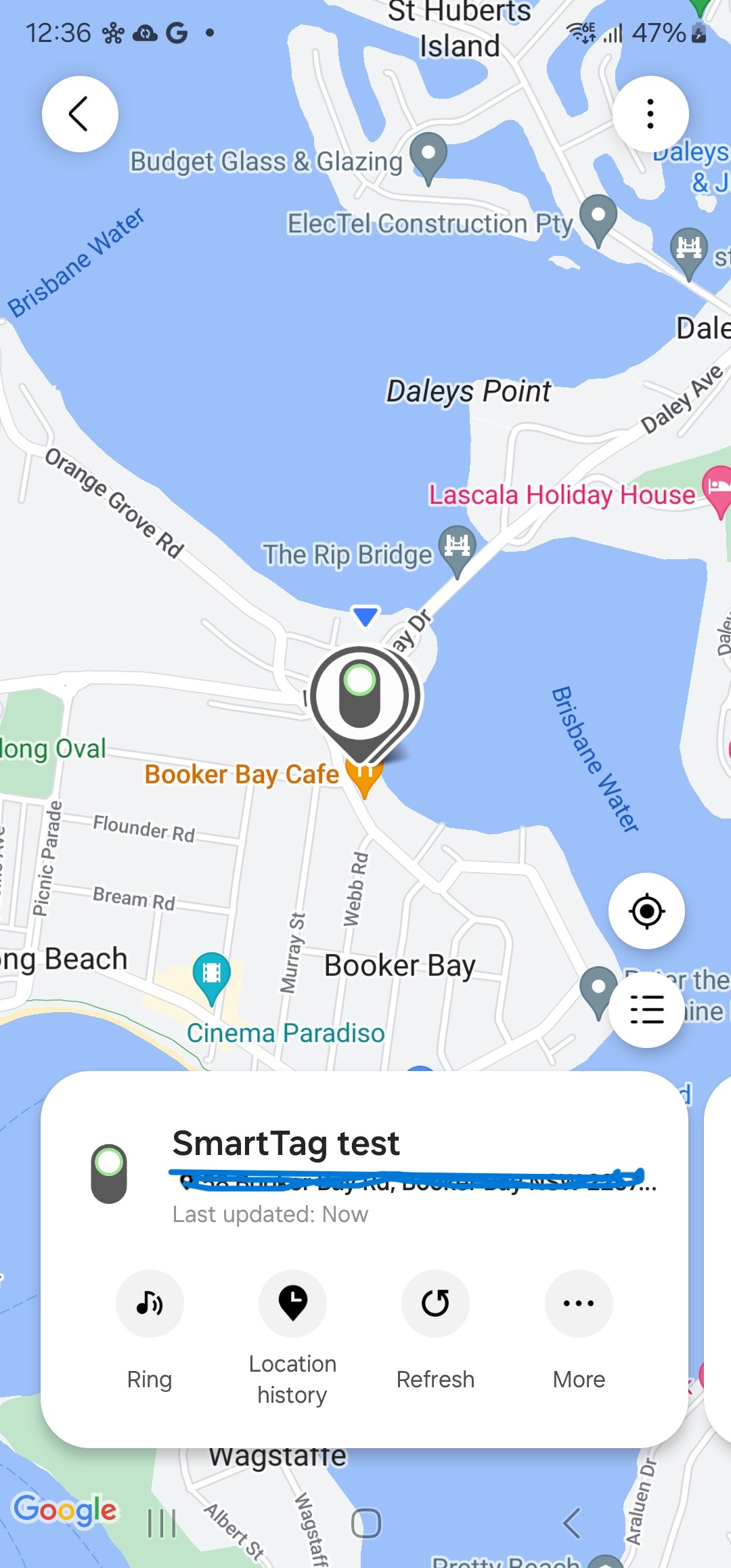First, at the beautiful Central Coast Ettalong Beach, leaving the tag with a friendly café operator. Over four weeks, we did not hear a peep. We can only put that down to the masses of Christmas holidaymakers using iPhones or not having the SmartThings App active on their recent Galaxy devices.