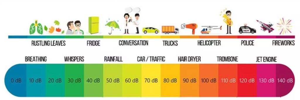 Hearing impairment is more about losing specific frequencies. Perfect hearing is from about 20Hz (Hertz – you can’t hear, more feel, this low bass) to 20kHz (kilohertz – again, you cannot hear this, but it fills in the sound, making it crisp and directional). An average adult with good hearing is closer to 150Hz to 17kHz.