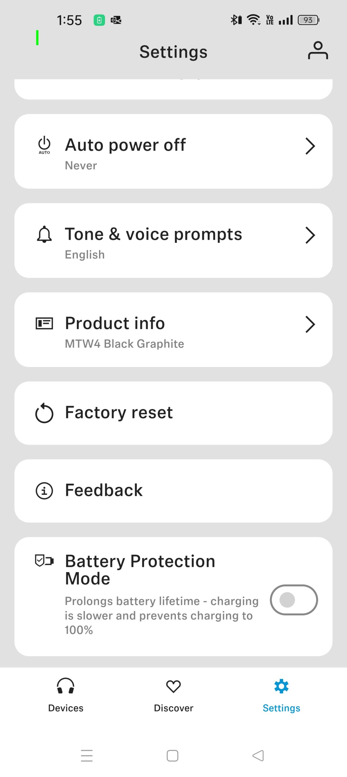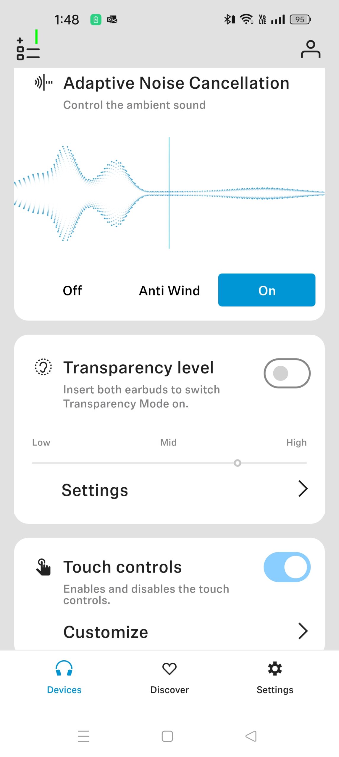 • Wind-noise reduction or ANC – you have to select one or the other in the app
