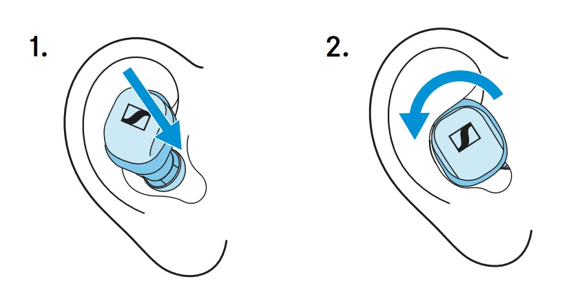 The ear wings (stabilisers) ensure a good fit in the concha and prevent them from falling out in exercise. IP54 is sweatproof.