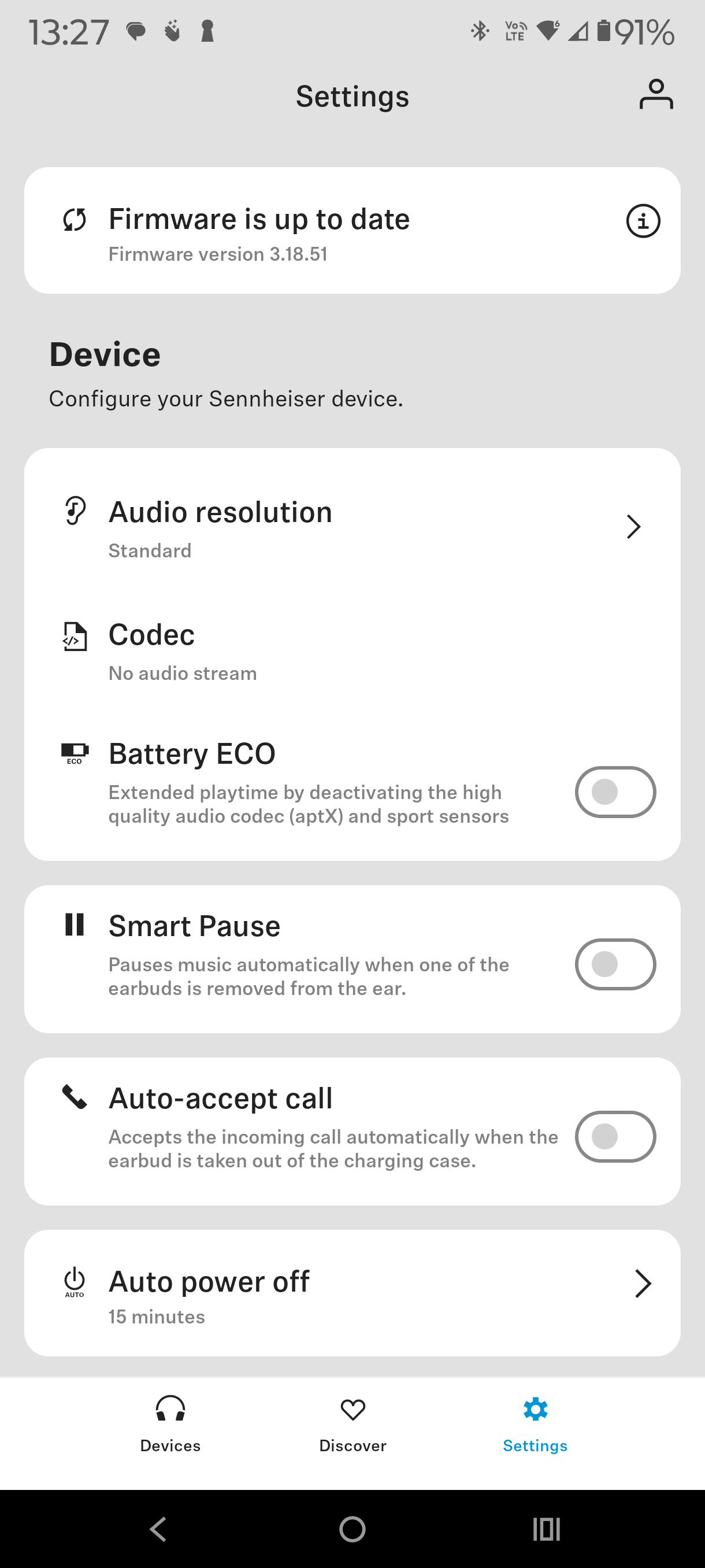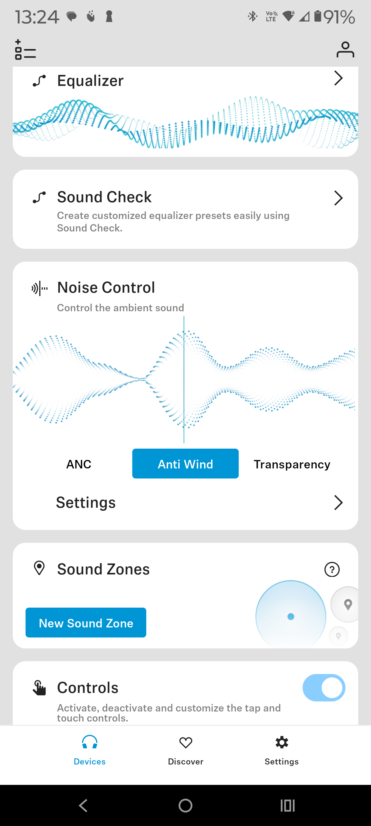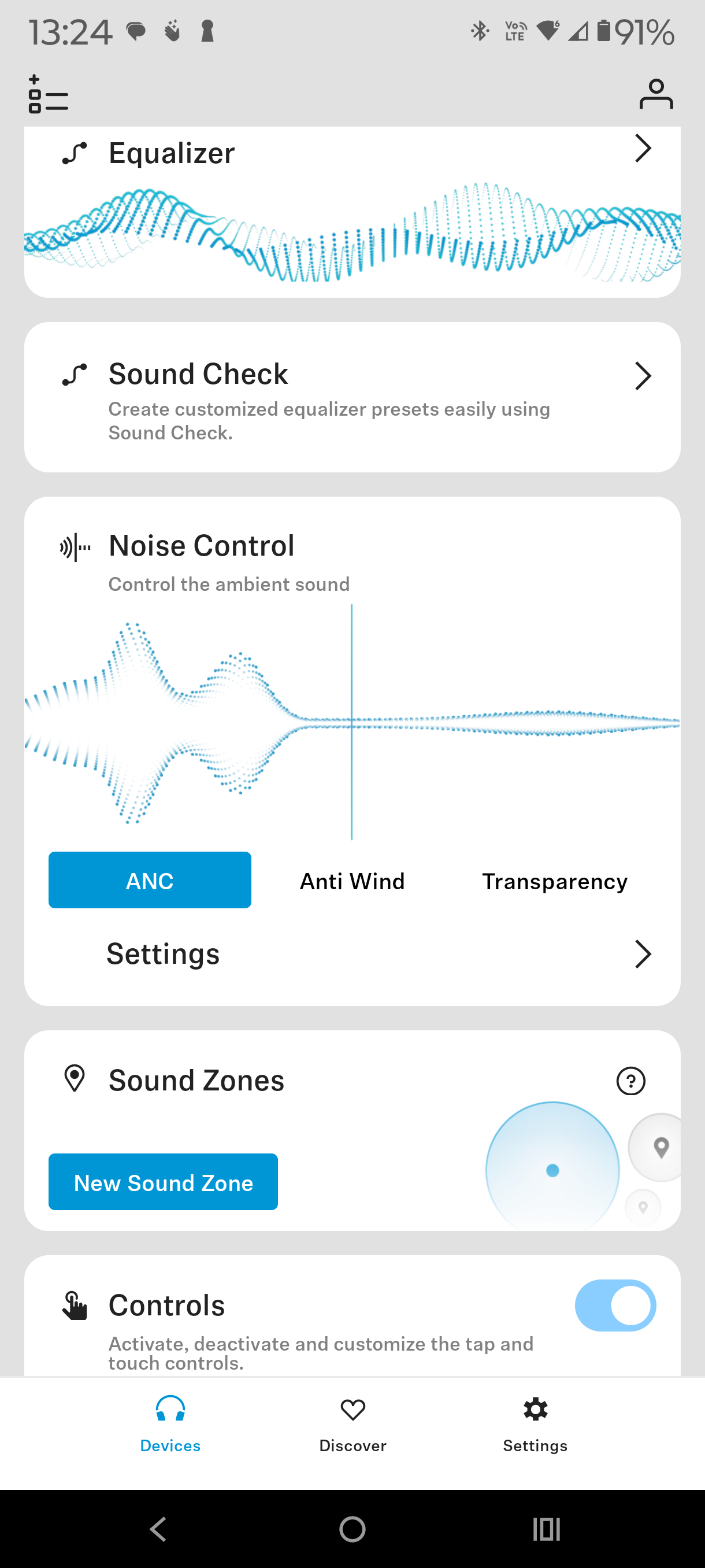 The Sennheiser Smart Control app is comprehensive, and the screenshots below are self-explanatory. Features include five-band EQ, adjustable ANC, Transparency and Anti-Wind modes, control remapping, in-ear detection, battery monitoring (‘Eco’ mode, auto-off timer, standby), and more.
