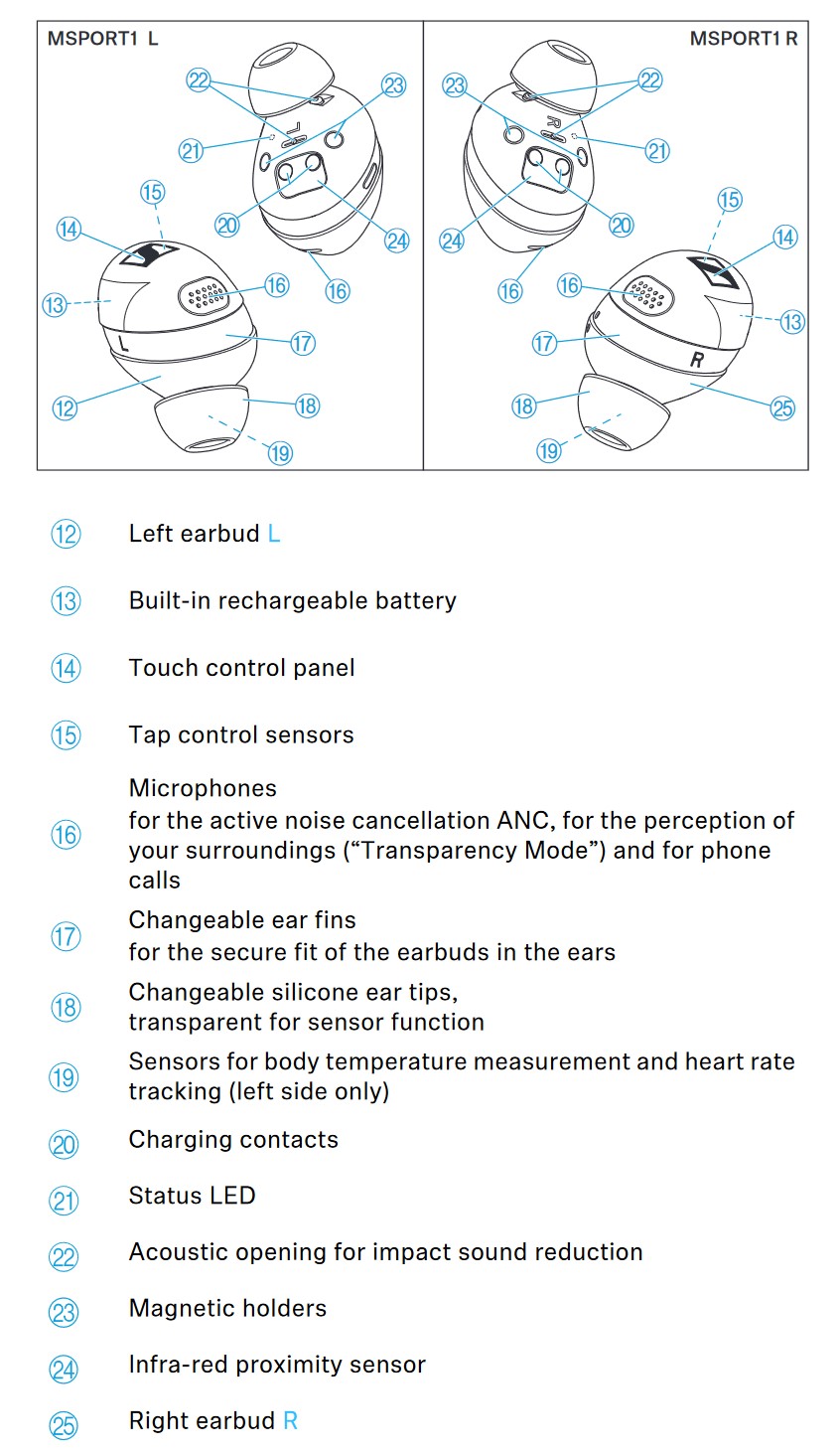 • MS is 6.4g (each earbud), and M4 is 6.2g