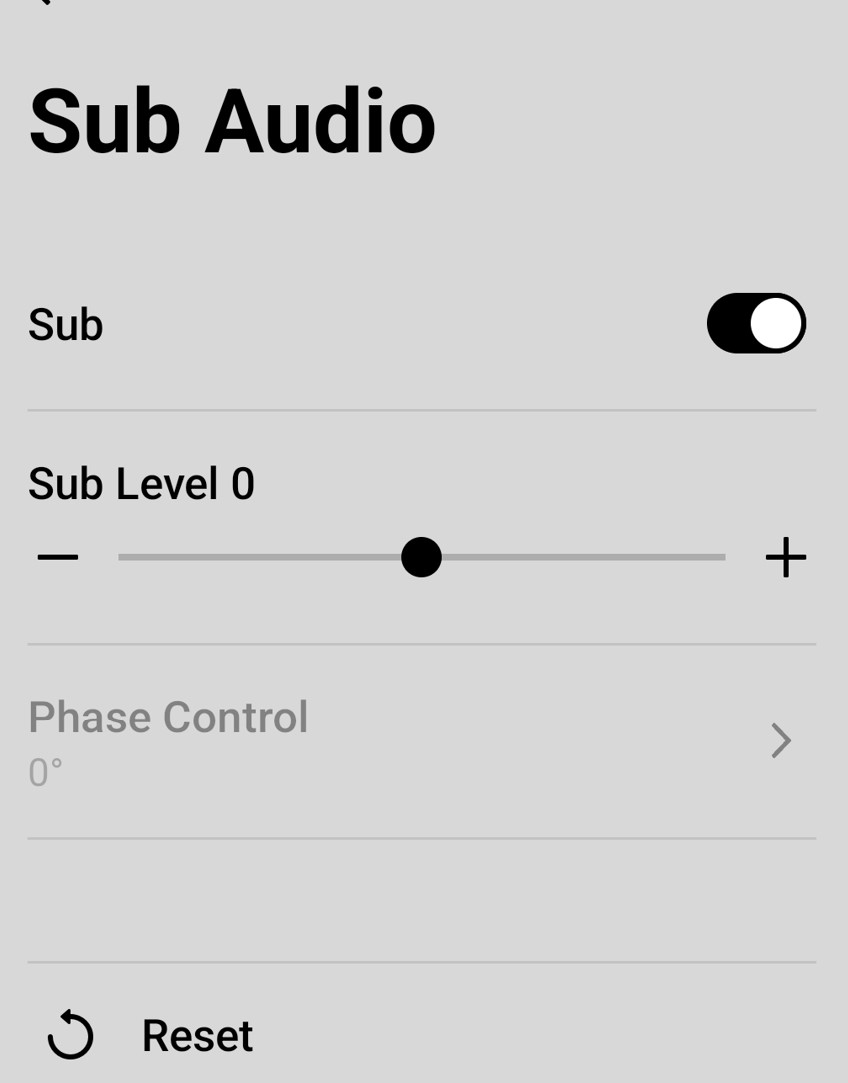 • If you are using the Sub, you can play with the slider until you get the effect you want. We found 75% was suitable for our setup.
