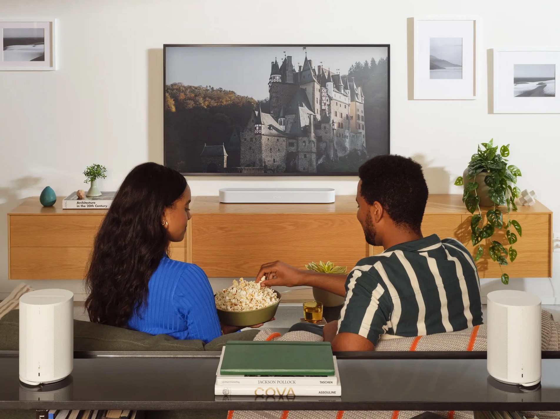If adding them as rears to an Arc or Beam (or even a Ray) soundbar, keep them about 3 metres back and place them directly behind the viewing area. Again do not obstruct the tweeters, as it will impact surround sound.
