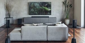Being an all-in-one, it relies on psychoacoustics – bouncing the height speakers off the ceiling and the surround speakers off nearby side walls. This works if you have the right room with adjacent left and right walls and a standard ceiling height.