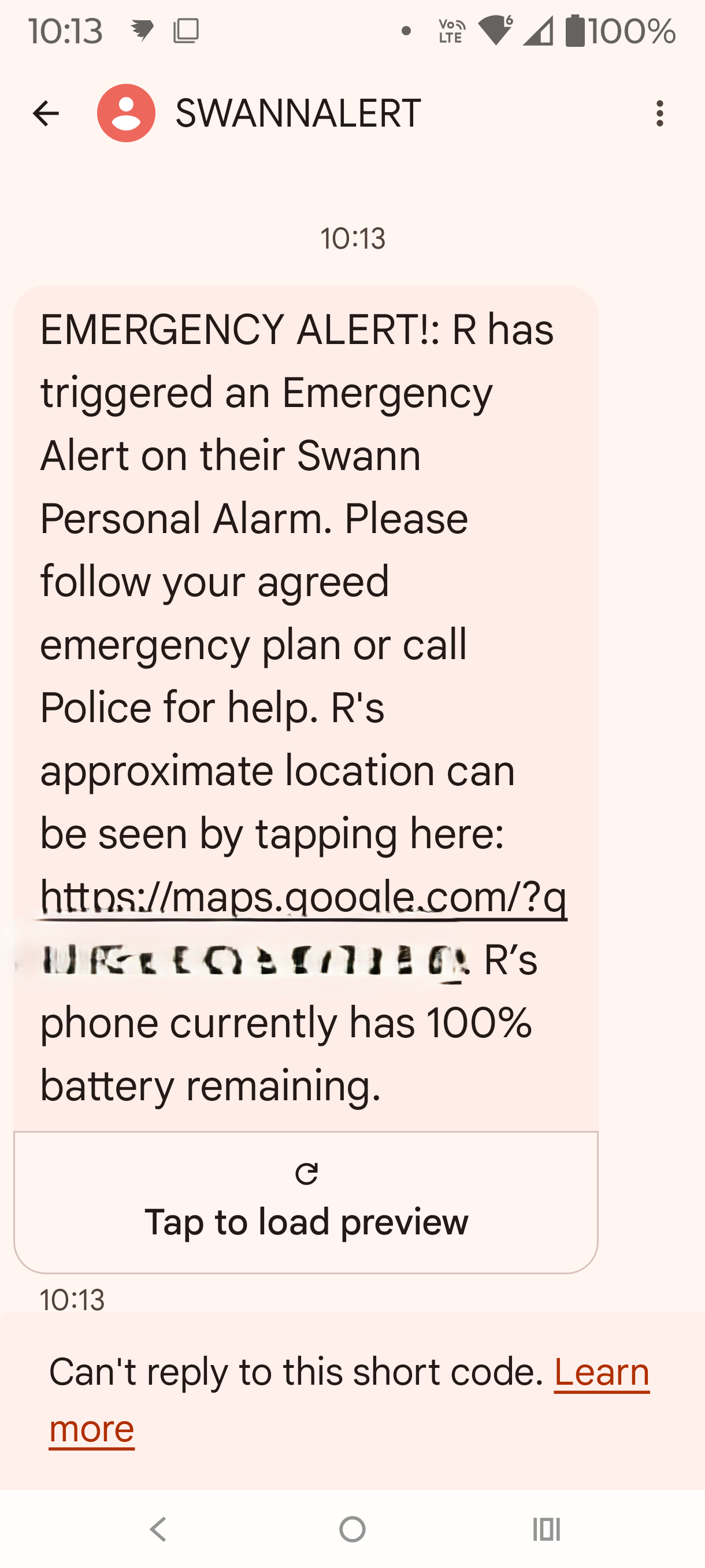 The SMS works well—press the button, and your contact will receive the SMS within a few seconds. However, it lacks a cancellation facility to advise of a false alarm—you have to call the contact.
