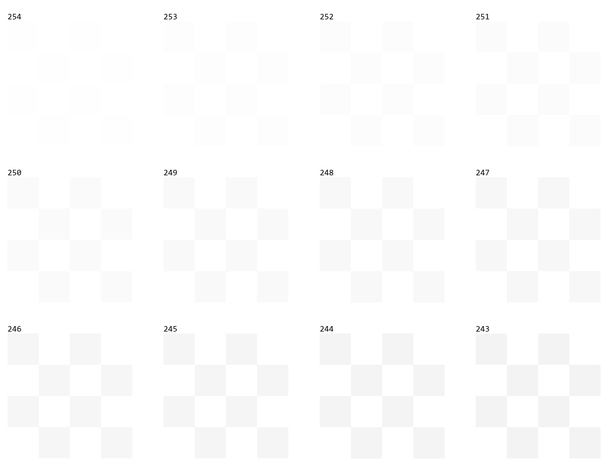 You can’t see on a phone of PC monitor but black levels are from 4 (dark grey) and white levels are from 234 to 254 – excellent.