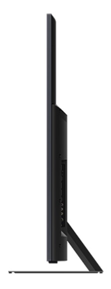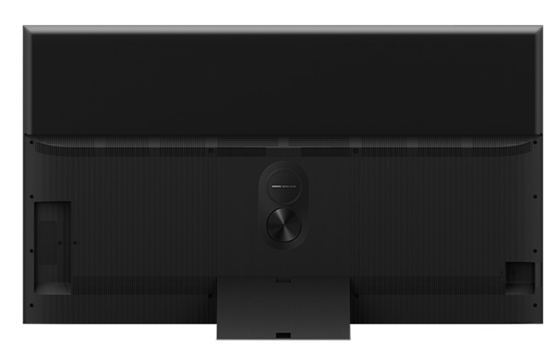 Mini-LED is a backlight type, so the panel is slightly thicker (30mm) to accommodate that. It has very narrow top and side bezels and a solid black aluminium edge. The rear is well-finished with power on the left and all ports on the right. The centre pedestal stand is height-adjustable to accommodate larger sound bars (no troublesome side legs). A power button is well hidden and can turn it on/off and bring up a basic on-screen start menu.