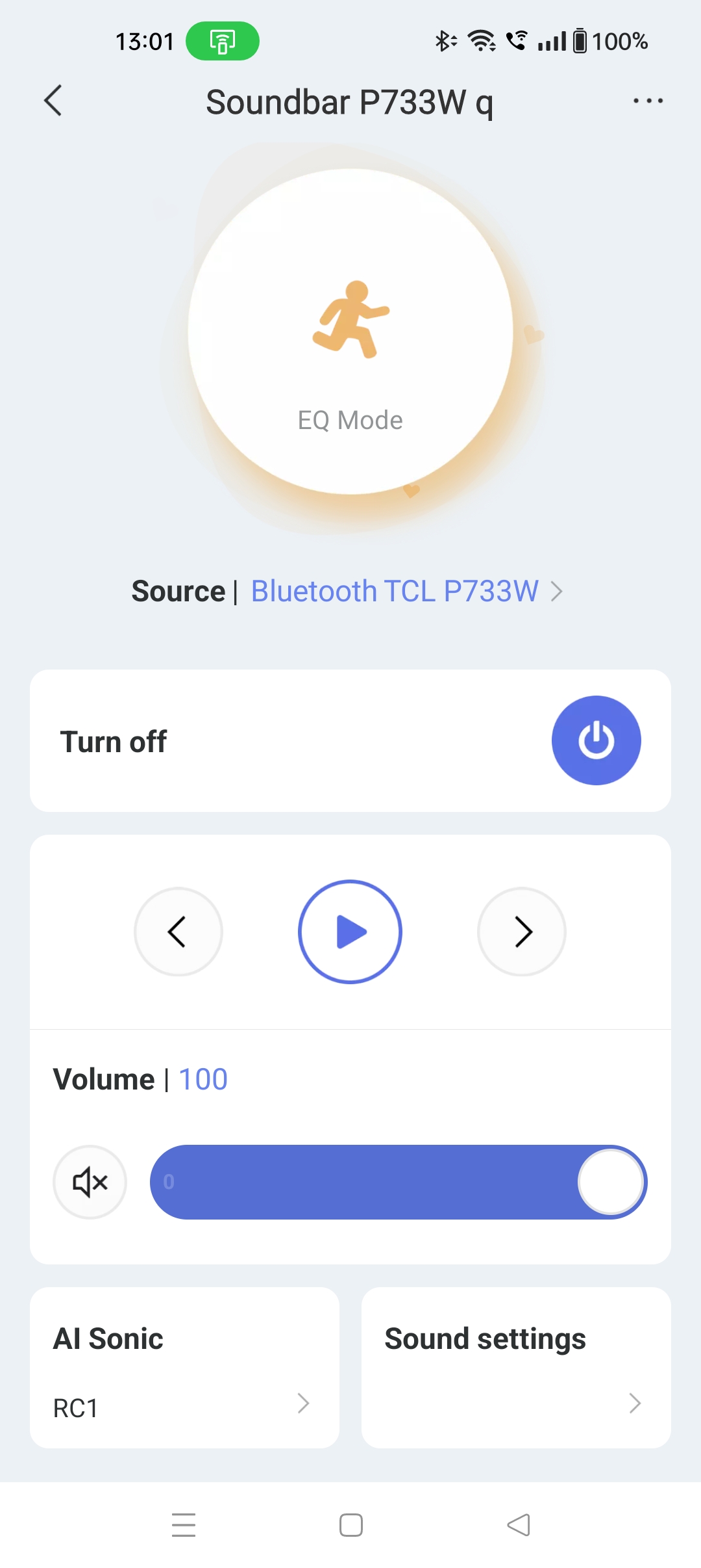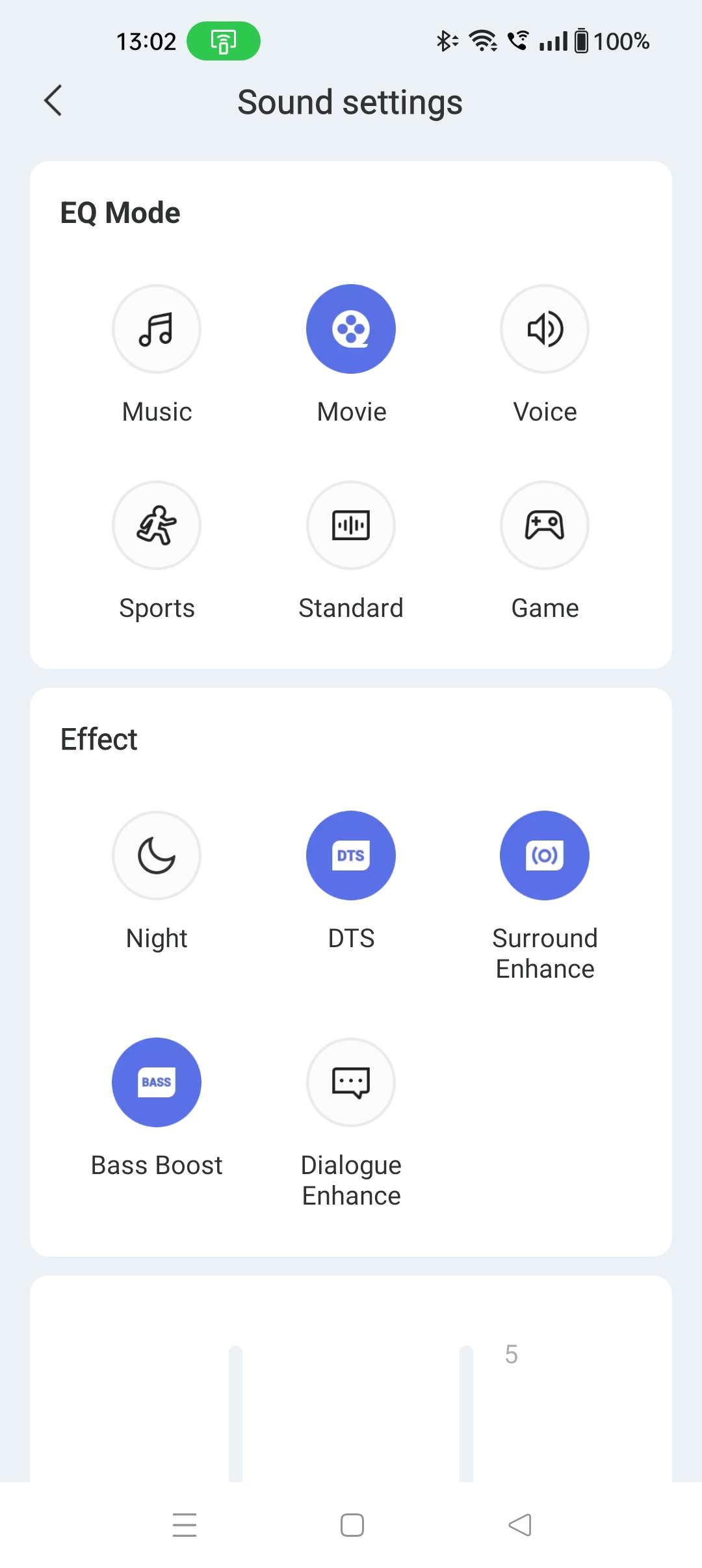 The app offers EQ modes (Music, Movie, Voice, Sports, Standard, and Game). We found that Movie was best for general TV although Standard works well too.