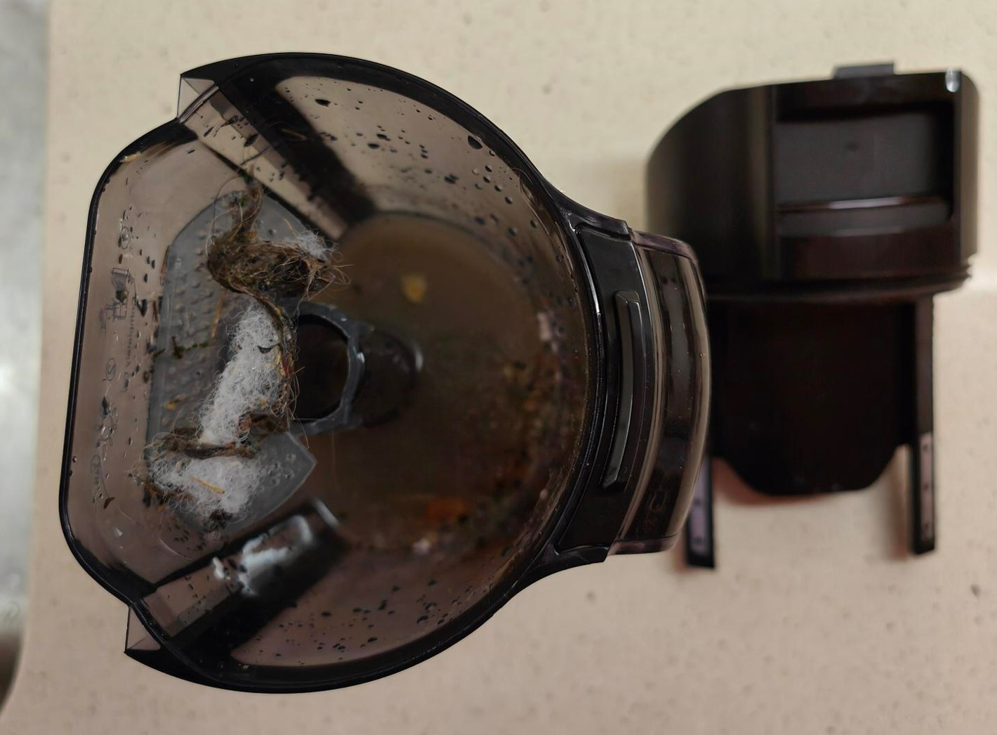 First, remove the dirty water tank and separate the upper dry compartment from it (and remove the dry filter). You will be surprised at how dirty the water is and the soggy mess of pet hair and other detritus in the upper compartment.