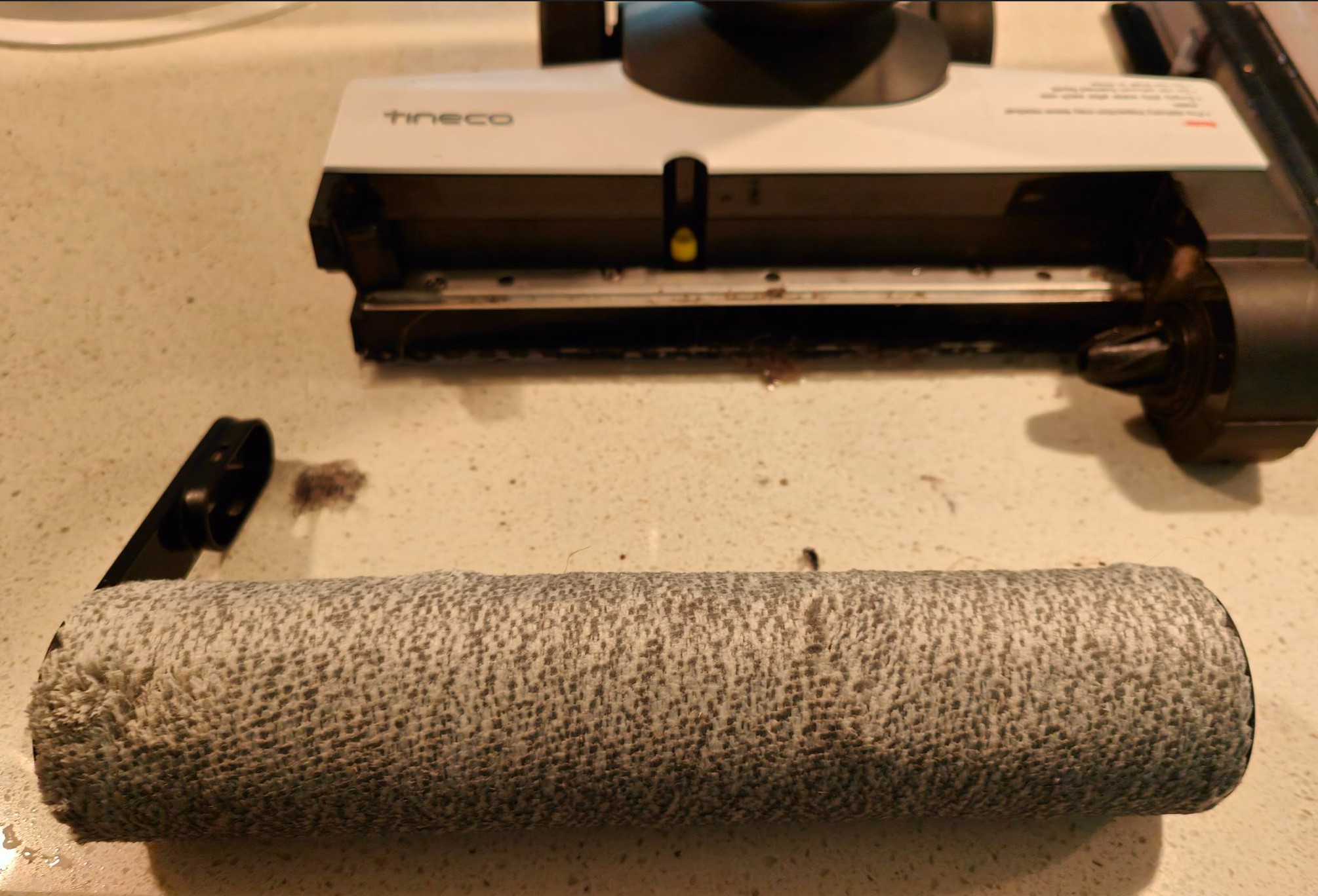 Dried food splatters are unlikely to be removed even after a few passes. A plastic scourer pad is best here, and the Tineco to finish up.