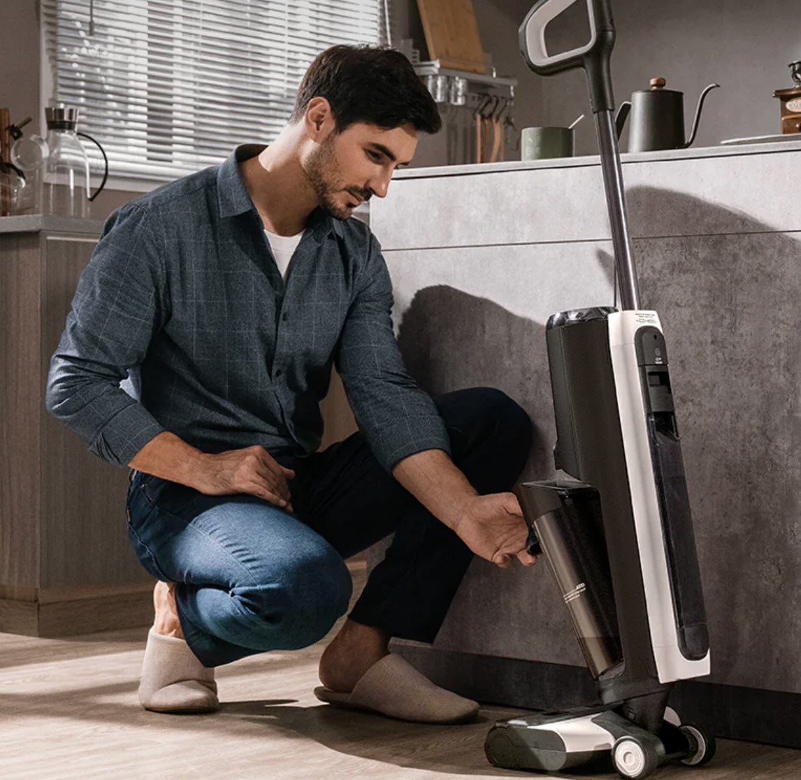 The key to its effectiveness is a simple wet/dry vacuum design coupled with a rotating powered roller. The Tineco iLoop sensor adjusts power levels and maximises battery life. Best of all, it cleans the roller brush after use, and most parts rinse under water or need a quick wipe over.