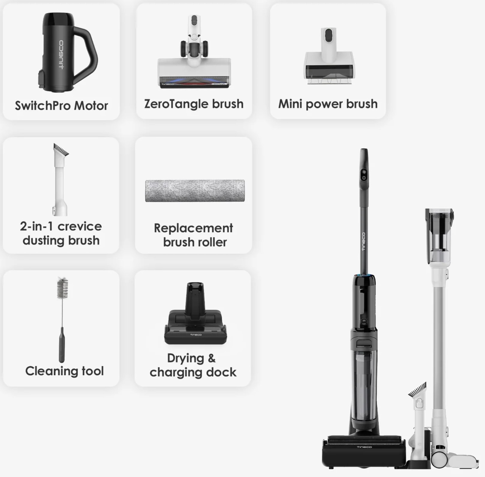 Yet Tineco has improved on the charging cradle with the addition of FlashDry – a 70° C, 5-minute hot-air dry to prevent any change of mould or odour.