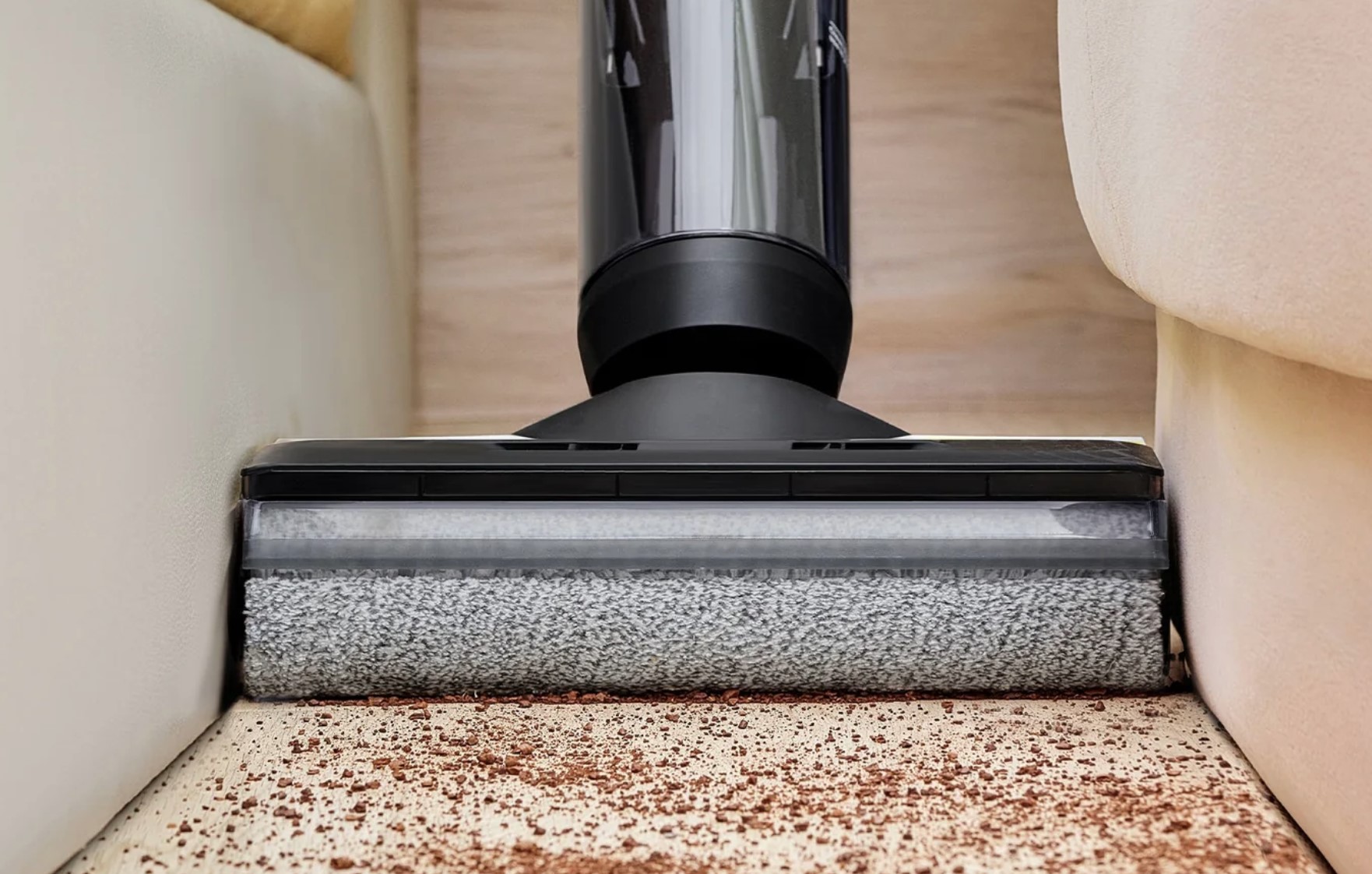 • Its handle adds 60mm to the vac/mop body ‘height’, making it a little more difficult to get under things like chairs and low furniture. That is no biggie, as Tineco needs to stay relatively upright to prevent water leakage.