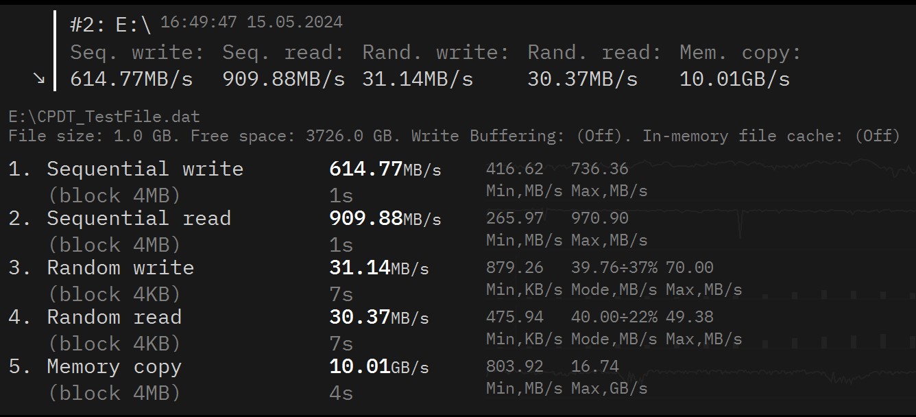 Crystal Disk Mark gives maximum throughput rates.