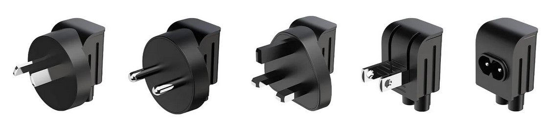 The hard-sided zippered travel case made no sense to me until I opened it and saw that it has five different 240V power plugs – AU, EU, UK, US and a plug to convert it to a desktop using a standard 2-pin cable plug. Ah, a travel charger!