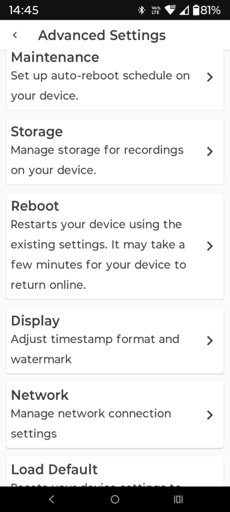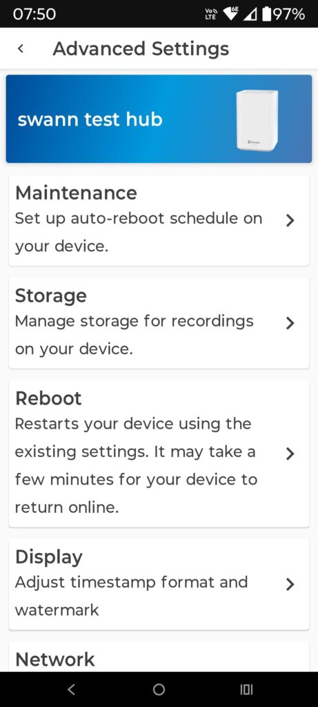 When you access the hub via an HDMI monitor and a USB-A mouse, you get the most responsive experience with all cameras coming up instantly. It allows you to add an SSD or HDD and format the drive. It also gives you far more granular setting options.
